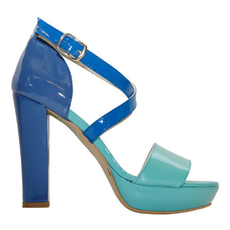 Sandale Pepper din piele lacuita, in combinatia albastru turcoaz.