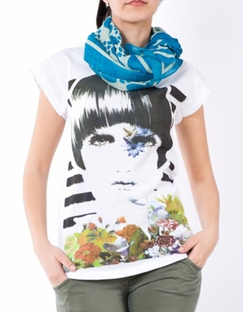 Tricou alb cu imprimeu, 95% bumbac, 5% elastan.
