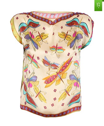 BLUZA CU IMPRIMEU FLUTURI DIN MATASE NATURALA
