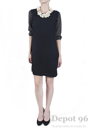 Rochie eleganta, la baza gatului cu maneci 3/4, lungime medie, iar pe spate are o crapatura ce porneste de la guler si se termina putin deasupra mijlocului, conturata de o dantela neagra. Este o rochie chic, ce pune in evidenta feminitatea.