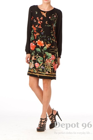 Rochie casual cu guler rotund, maneca lunga, de lungime medie, realizata dintr-un matelial fin matasos. Pe partea din spate are o crapatura ce porneste de la guler si se termina putin deasupra mijlocului. Crapatura este conturata de o dantela verde inchis, fapt ce ii da rochiei o nota de eleganta.
