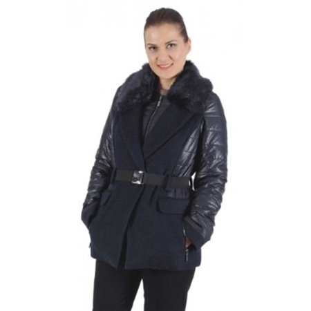 Jacheta dama de iarna bleumarin 215624, model din colectia de jachete de dama, La Femme toamna iarna 2013. Jacheta este captusita, matlasata si are un cordon elastic in talie care evidentieaza silueta. Model de jacheta cu partea de jos din stofa de lana si care se inchide in fata cu fermoar. Regasim fermoare si la buzunarele din fata ale jachetei. Guler de blana este detasabil.