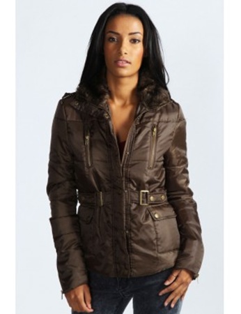 Geaca maro cu guler din blana