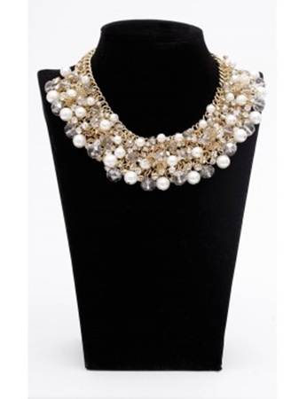 Colier auriu cu perle,margele si cristale, NISSA