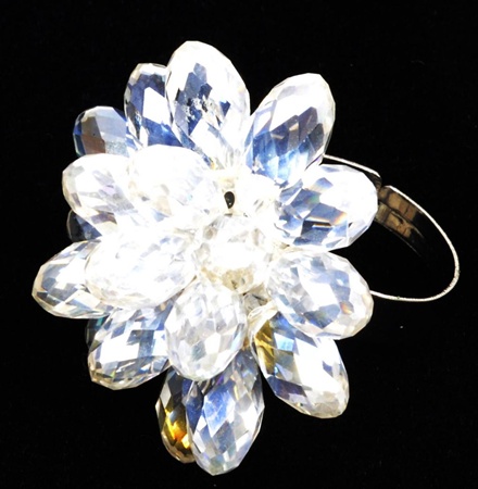 Este timpul sa indraznesti, sa porti accesorii si bijuterii spectaculoase, iar noua colectie, Cinderella Noir, propune straluciri, aplicatii, cristale, paiete. Fii prima care le adauga colectiei ei si fii gata sa stralucesti purtand inelul oversized, cu floare din cristale transparente!