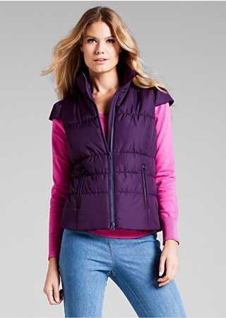 Vesta matlasata cu fermoar si doua buzunare cu fermoar in fata.