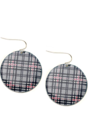 Cercei metalici rotunzi, cu email si model ecosez de la Meli Melo, 7,49 lei.