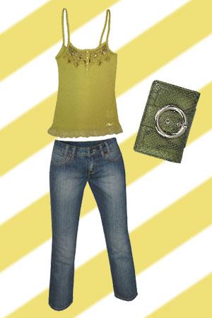 Pentru o imagine tinereasca si plina de prospetime, o pereche de jeans conici si un maiou cu bretele subtiri te poate avantaja de minune. In plus, daca accesorizezi totul printr-un portofel interesant, cu catarama argintie vei fi apreciata pentru originalitatea ta. Maiou Prestij 175 RON Blugi Castro 199 RON Portofel Kara 34 RON