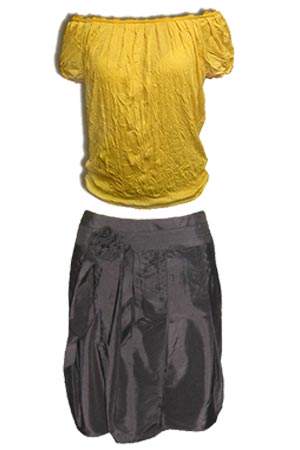 Un look diafan, feminin si chiar romantic poate fi usor obtinut daca optezi pentru o bluza galbena, cazuta pe umeri si o fusta 3/4 usor lucioasa, dintr-un material lejer si deloc pretentios. Vei capata un aspect sic care va atrage o multime de priviri invidioase. Bluza Roxy 60.8 RON Fusta Castro 199 RON