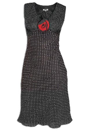 O rochita neagra cu buline albe, putin vaporoasa si dintr-un material "racoros" poate salva situatia in zilele calduroase in care tinuta este "obligatorie". Rochie Yokko - 250 RON