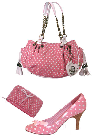 Cu totii stim ca bulinele sunt in mare voga anul acesta. Si daca acestea sunt si in combinatie cu un roz pal, inocent, va veti putea transforma intr-o clipa in "femeia-copil" care e atat de fermecatoare. Indiferent daca gentile se asorteaza sau nu cu pantofii, cand vine vorba de dragalasele puncte albe combinatiile cu acelasi tipar sunt...adorabile! Geanta Lollipops: 199,50 lei Pantofi Lollipops: 229,50 lei Portofel Lollipops: 59,50 lei
