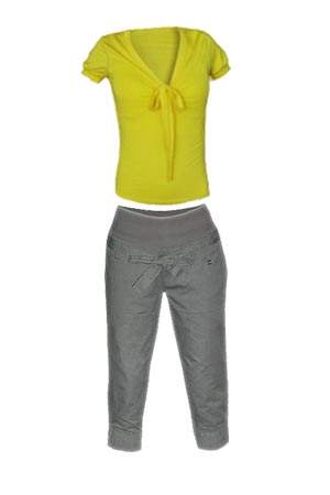 Daca va doriti sa capatati un aer jucaus fara a parea prea copilaroase, alegeti o bluza galbena cu maneci scurte si usor bufante combinata cu niste pantaloni trei sferturi. Funditele de la ambele piese vestimentare va vor asigura atingerea scopului initial. Bluza Mario - 89 RON Pantaloni Castro - 119 RON