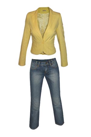 Daca "office" nu implica neaparat culori inchise atunci merita incercat un outfit format dintr-o pereche de jeans simpli si un sacou galben, deloc strident. Combinatia poate parea usor fortata dar este binevenita daca doriti sa transmiteti o stare plina de entuziasm! Sacou TinaR - 229 RON Jeans Castro - 199 RON