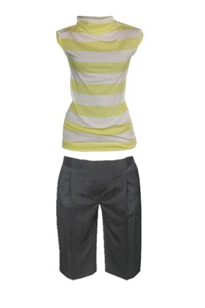 Daca aveti o silueta care sa va permita sa purtati cu incredere dungi orizontale (stiut fiind faptul ca acestea "ingrasa"), combinati o bluza stramta, "pe gat" cu niste pantaloni inchisi la culoare care sa echilibreze intreaga tinuta. Bluza Castro - 64.90 RON Pantaloni M&M - 237 RON