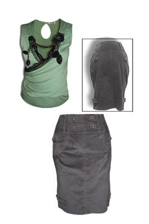 Elegant nu se identifica intotdeauna cu sacouri sau costume "deux-pieces" sobre. O fusta trei sferturi usor conica la care se adauga o bluza verde, usor decoltata si fara maneci ar putea reprezenta o alegere cel putin la fel de inspirata pentru un eveniment deosebit. Maiou Prestij - 349 RON Fusta Erros - 99.90 RON