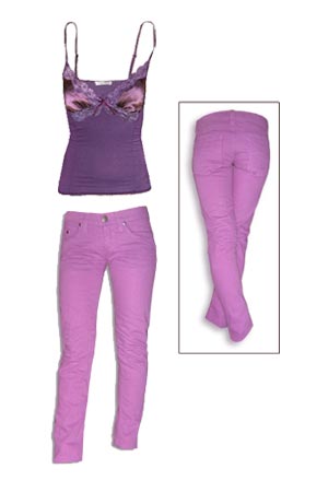 Cand ne plictisim de culorile terne, de negru sau de nuante cenusii, partea "indrazneata" din noi ne va da curajul de a incerca ceva inedit. Atunci, o tinuta pe tonuri de mov si lila devine ideala, aducand cu sine si nota de optimism necesara "incalzirii" intregii atmosfere. Maiou Ziggo - 100 RON Jeans Ziggo - 180 RON