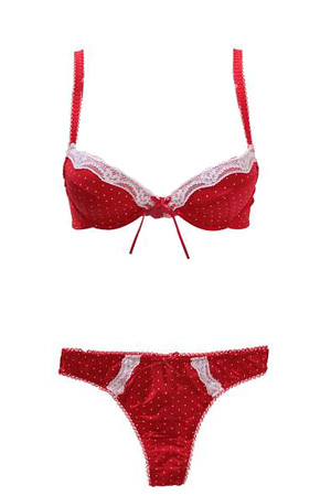 Bulinele sunt si ele in trend, dar se pare ca am fost invadati de acest curent din toate unghiurile. Poti propune o abordare originala, alegand buline pentru lenjeria intima. Combinatia alb-rosu il deruteaza pe norocosul care te priveste. Jocul de culori este jucaus, dar in acelasi timp plin de subintelesuri. Sutien Tara Fashion 42.50 LEI Chilot Tara Fashion 24.5 LEI
