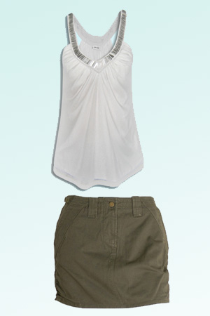 Fustele mini sunt si ele foarte in vara aceasta, sigur, din motive evidente, dar si pentru ca stilul mai tine uneori cont si de influentele din ce in ce mai coplesitoare ale temperaturilor. Iata o fusta simpla din denim, cu linie casual, pe care o poti de asemenea, mula pe orice situatie, in functie de combinatiile si accesorizarea cu care jonglezi. Iti propun aici pentru o iesire la terasa, la un party sau chiar la un date, un top de culoare alb, foarte fluid, extrem de potrivit serilor de vara, care te va scoate din anonimat prin aplicatiile pretioase si, desigur, prin tandem-ul cu fusta din denim kaki. Noi am ales: top MORE & MORE 233 RON si fusta NAF NAF 169.9 RON
