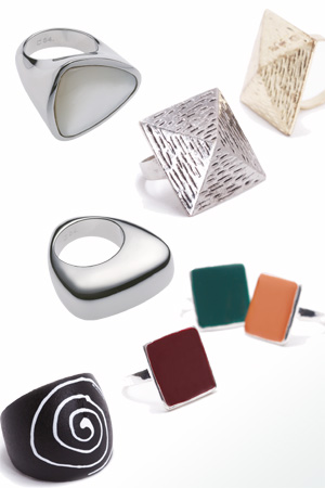 La mare cautare sunt inelele supradimensionate, brosele grandioase cu pietre, lanturi mari, panglici de catifea, dantele, sireturi, toate acestea avand un design sofisticatt si nonconformist. Inelele tip cocktail, masive si stralucitoare, cu pietre colorate, sunt extrem de populare. Nu ezitati sa purtati inele argintii sau aurii, cu cristale, caci sunt vedetele sezonului. Cand alegeti astfel de inele trebuie totusi sa respectati o regula foarte simpla: nu se poarta mai mult de un inel. Daca nu respectati aceasta regula, riscati sa aveti in loc de o tinuta stilata si extrem de atragatoare, una de prost gust. Foto: Inele Accesorize, Rochet si Meli