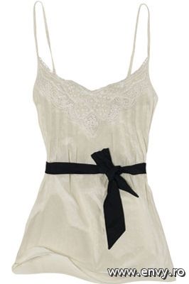 Daca iti place sa porti multe accesorii la baza gatului, opteaza pentru un cordon cu fundita. Alege o culoare in contrast si leaga funda intr-o parte sau pe mijloc. Propunere: maieu alb de la Pull and Bear, pret 99 lei.