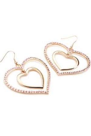 Cercei foarte finuti si atragatori, in forma de inima cu cristale roz aplicate. Aceti cercei se gasesc la Aldo. Pret: 99 Lei