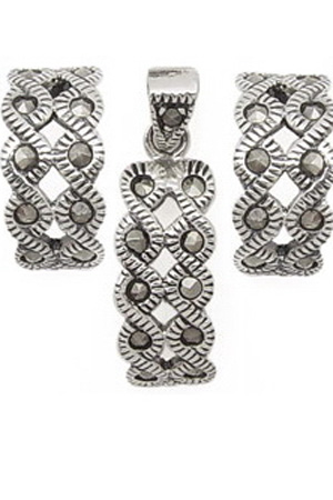 Set argint cu marcasit de la be special Un set de bijuterii rafinate si elegante, format dintr-un pandantiv si o pereche de cercei.Pentru a nu provoca alergii sau iritatii ale pielii, argintul nu contine nichel iar pentru a-i conferi bijuteriei un aspect antic, argintul a fost oxidat. Pret: 59,00 Lei