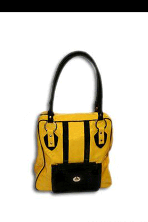 Geanta din piele lacuita de la Nichi. Un design interesant, pe o combinatie contrastanta de galben si negru.