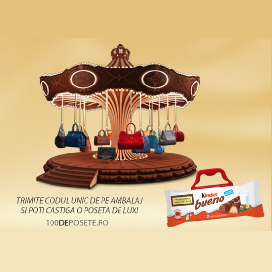 Si acum, lovitura de gratie! Desi castigi o poseta, Kinder Bueno iti da ocazia sa porti mai multe! Cate una in fiecare saptamana, pe care s-o asortezi in fel si chip. S-o scoti in oras, s-o afisezi la iesirile cu prietenele si sa le starnesti... admiratia.