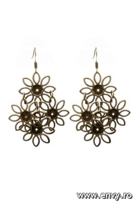 O pereche de cercei fantezie ar completa perfect o tinuta casual de zi. Alege dintre modelele variate si cu siguranta, look-ul tau va fi unul deosebit. Asorteaza astfel de accesorii unei rochii dantelate de inspiratie vintage. Nu se mai poarta setul de bijuterii, asadar nu opta si pentru un colier cu un model la fel de incarcat. Propunere: Cercei Four Seasons realizati cu accesorii metalice in forma de floare de la Brio Collections, pret 7.00 lei;