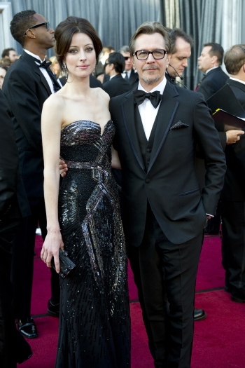 18. Gary Oldman si Alex Edenborough Alex Edenborough, partenera de viata a actorului Gary Oldman a imbracat o rochie neagra stralucitoare, semnata Roberto Cavalli.