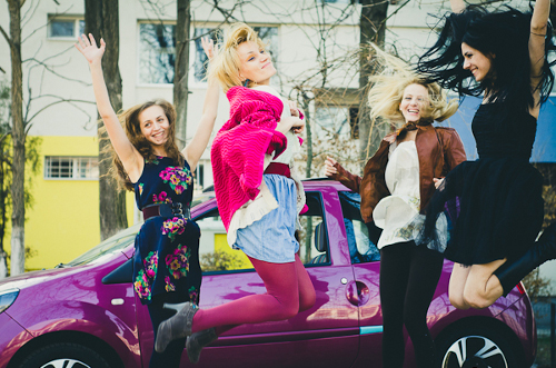 In cea de-a doua zi am facut ce-ar fi facut orice femeie atunci cand primeste o masina noua pe mana: am venit imbracate in tinute asortate cu designul fashion al masinutei.