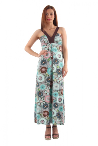 Rochie lunga din jerseu elastic cu lycra, cu imprimeu floral si detalii in contrast. O propunere ideala pentru zilele calde de vara!