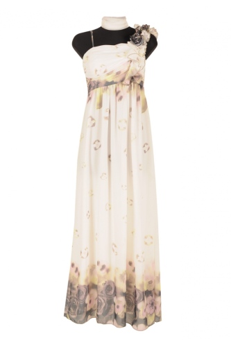 Rochie verde lunga prevazuta cu captuseala. Bretele reglabile, iar pe cea stanga are aplicatie voal cu tranfdafiri si strasuri. Prevazuta cu push-up si banda elastica spate. Fii seducatoare cu o rochie lunga cu spatele gol, care sa iti sublinieze formele intr-un mod subtil din noua colectie La Femme 2012. Lungime 127 cm. Compozitie fata si captuseala: 100% poliester