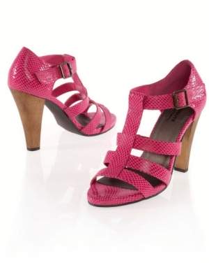 Exterior sintetic ce imita pielea de sarpe. Captuseala si brant sintetic montat pe spuma in intregime, 3/4 brant sintetic. inchidere cu catarama intr-o parte din metal invechit montata pe elastic. Talpa din elastomer antiderapanta. Toc lemn 10 cm.