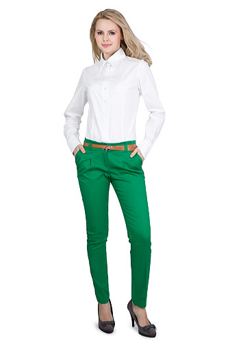 Pantaloni verzi din bumbac model ARTEMIS din tercot elastic.