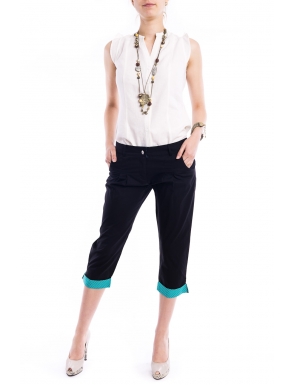 Pantaloni 3/4 negri cu manseta turcoaz in buline