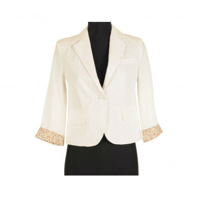 Sacou alb cu captuseala floral print