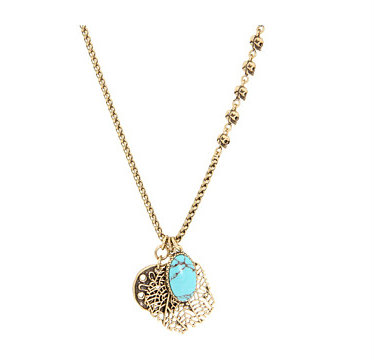 Lucky Brand Coral Fan Charm Necklace cu filigran si piatra turcoaz
