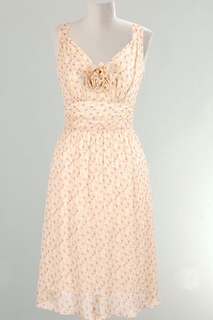 Rochie voal creponat galben cu floricele, Yokko