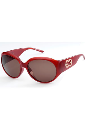 Ochelari de soare Escada cu rama rosie de plastic si cristale Swarovski