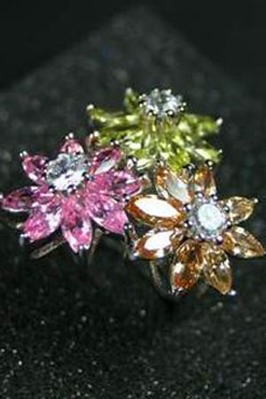 Inel de argint cu 3 flori colorate, Fashion Guru