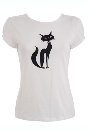 Tricou cu pisica neagra si zgarda din strasuri, Debenhams