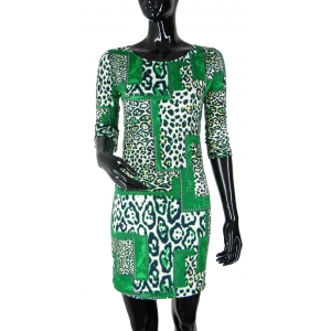 Rochie cu decolteu rotund si maneca 3/4, decorata cu imprimeu "animal print". (imprimeu din tesatura ce nu se degradeaza in timp) Croiala cambrata ce urmareste linia corpului.