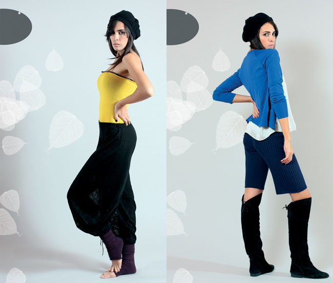 Pantalonul scurt si salvari- articole vestimentare in culori mai reci, simple fara imprimeuri si cu o linie simplista, dar complicate in acelasi timp prin complexitatea modelului de pe tricot avand un imprimeu cu volum. Firele din care sunt confectionate sunt naturala 100%. Alegerea tricotului ca materie pentru colectia de vara permite designer-ului un joc inedit in domeniul modei.