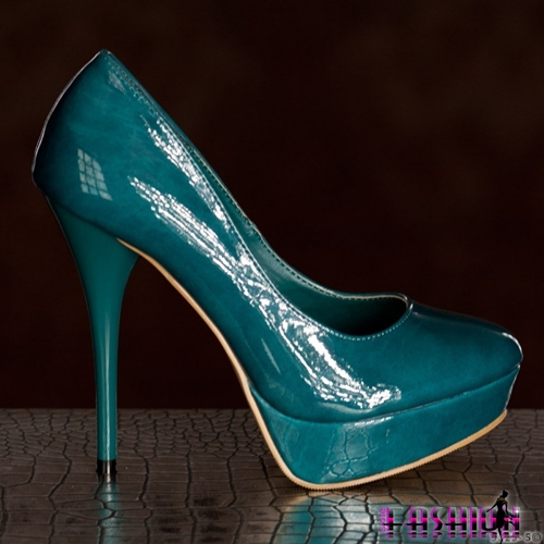 Pantofi eleganti cu toc inal realizati din piele ecologica lacuita.