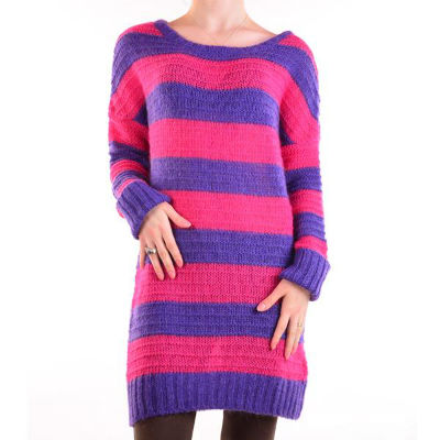 Pulover Bershka crosetat cu dungi orizontale in doua nuante roz si mov.