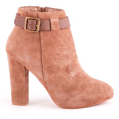 Botine din piele intoarsa, decorate in partea superioara cu o catarama. Poarta-le la o tinuta smart casual, cu skinny jeans, camasa si boyfriend jacket.