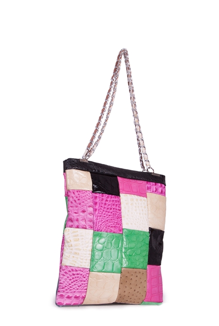 Geanta are un compartiment care se inchide cu o capsa magnetica si 2 barete din lant impletit cu piele