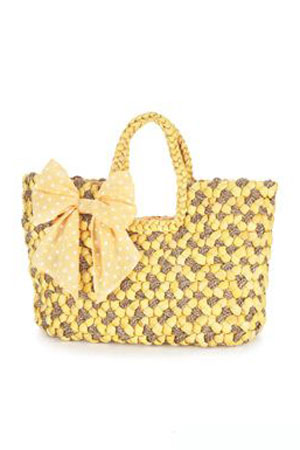 Geanta de plaja din rafie si margele galbene, Aldo