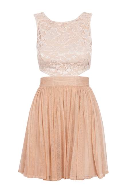 O tinuta speciala pentru un eveniment special cu decolteu rotund fata si in V pe spate. Rochita este decupata pe laterale si se inchide cu fermoar vizibil pe mijloc spate.